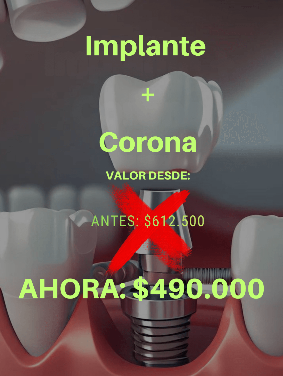 Es posible que en otros lados encuentre ofertas más económicas, pero debe confirmar y asegurarse si la oferta corresponde solo al implante o si incluye el implante más la corona definitiva, ya que muchas promociones consideran solo una parte del tratamiento.